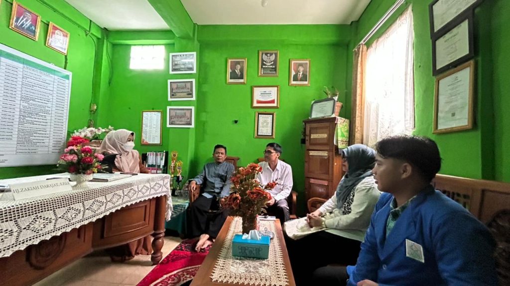 Setibanya di lokasi, rombongan disambut dengan baik oleh pihak sekolah, yakni Ibu Hj. Dzakiah Darajat, S.Pd.I., dan Bapak Yusuf, S.Pd. Dalam sambutannya, pihak sekolah menyampaikan harapan agar mahasiswa magang dapat berperan aktif dalam mengorganisir berbagai kegiatan keagamaan di sekolah, seperti memimpin kegiatan sholat berjamaah, mendampingi pembinaan ibadah harian, serta turut serta dalam kegiatan-kegiatan pembiasaan religius lainnya.