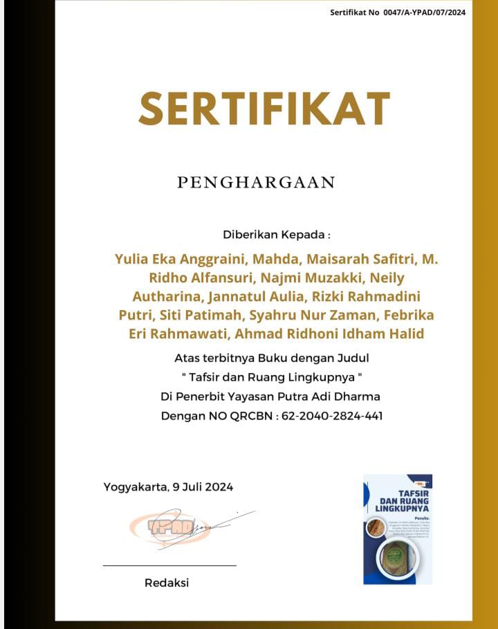 Mahasiswi Studi Agama-Agama Fakultas Ushuluddin dan Humaniora Terbitkan Buku tentang Tafsir dan Ruang Lingkupnya