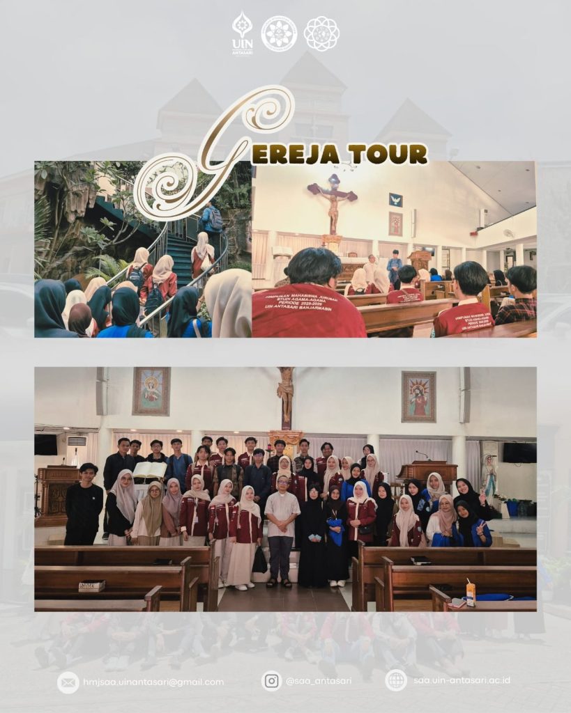 BANJARMASIN – Dalam rangka memperluas wawasan keagamaan dan memperkuat sikap toleransi antarumat beragama, sekelompok mahasiswa Program Studi Studi Agama-Agama (SAA) Fakultas Ushuluddin dan Humaniora UIN Antasari Banjarmasin melaksanakan kegiatan studi kunjungan ke Gereja Katolik (Gereja Katolik Paroki HYYMK) pada Sabtu, 13 (9, 2025). Kegiatan ini merupakan program kerja yang diselenggarakan oleh Himpunan Mahasiswa Jurusan (HMJ) SAA. Kunjungan dan Sambutan Pihak Gereja.
